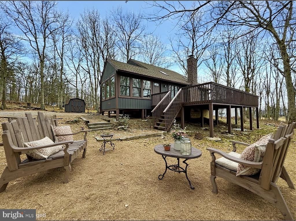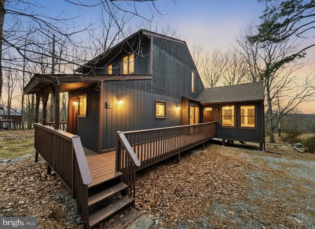 FULL INSPECTION REPORT available! FULLY RENOVATED! MOVE-IN READY POCONOS home. 103 Ashley Court features 3 BEDROOMS and 2 FULL BATHS on a private 0.5-acre CORNER LOT. Oversized STORAGE SHED — eligible for replacement with a detached GARAGE (permit required). Highlights include TWO-STORY CEILING with SKYLIGHTS, and a floor-to-ceiling brick FIREPLACE in the living room. A MODERN KITCHEN remodel featuring a WATERFALL EDGE ISLAND with STONE countertop, offering extra cabinet space and a comfortable seating area, STAINLESS STEEL APPLIANCES, High-Efficiency Cooling and Heating System. Both bathrooms are updated with STYLISH tile, NEW vanities, and MODERN fixtures. The first-floor PRIMARY SUITE offers a FULL BATH, while two additional bedrooms and a shared bath are located upstairs. Additional UPGRADES include NEW FLOORING, RECESSED LIGHTING, a laundry room with washer/dryer, a LARGE nature-surrounded DECK, a NEW ROOF with SKYLIGHTS, NEW second floor WINDOWS, and a ductless HVAC system. Community amenities encompass INDOOR and OUTDOOR POOLS, TENNIS courts, a FITNESS CENTER, SKI HILL, RESTAURANT, LAKE access, and 24-hour security. This property is ideal as a VACATION retreat, FULL-TIME home, or INVESTMENT.